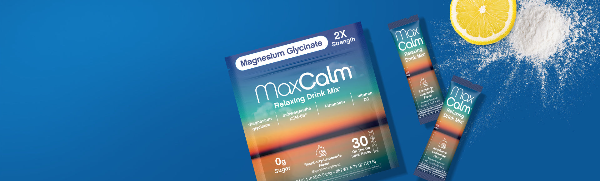 With zero sugar, a refreshing raspberry-lemonade flavor, MaxCalm® turns everyday hydration into a ritual of renewal. Designed in both sleek on-the-go stick packs and versatile powder tubs, it dissolves effortlessly for a smooth, clean finish.